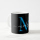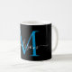 Élégant noir brillant océan bleu Monogramme Girly Script élégant café Mug