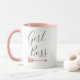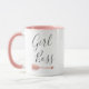 Un simple t-shirt blanc avec une flèche rose en bas où au-dessus, vous pouvez le personnaliser avec un logo, un nom ou une lettre ou simplement garder comme il est avec la phrase "Girl Boss". Thème girly moderne.