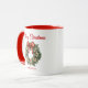 Élégante tasse à café de vacances avec une couronne de Noël aquarelle festive ornée d'arc rouge et entourée de baies sèches. Personnalisez l'avant de la tasse à couronne d'aquarelle de Noël avec un message d'accueil personnalisé, votre nom de famille ou tout autre texte personnalisé. L'ornement de vacances personnalisé est le cadeau parfait à donner aux parents, grands-parents, amis, enseignants, et plus encore!