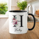 Créez votre propre tasse personnalisée avec un nom personnalisé et un monogramme avec un élégant bouquet floral aquarelle.