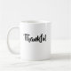 Une simple tasse à café bon marché. Avec "Thankful" dans une police de caractères élégante, créé comme un cadeau d'action de grâce abordable à donner à votre famille et à vos amis à la table de fête d'action de grâce lorsque vous êtes tous en train de festoyer sur la dinde et de boire du vin. Montrez-leur que vous êtes reconnaissant de les avoir en famille et entre amis.