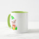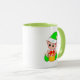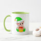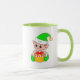 Un elfe vert mignon tenant une boîte cadeau sur Mug arrière - plan blanc. Le nom peut être personnalisé. Idéal pour la Saint-Patrick