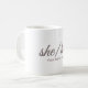 Elle dans Script Police sur une tasse de café. Ajoutez votre nom pour personnaliser.