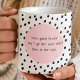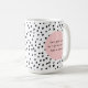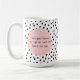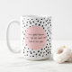 Elle dira toujours qu'elle s'en sort Mug Motivationnel. Ce design inspirant présente des points noirs et blancs abstraits modernes avec un cercle de cadre rose blush peint. La citation dit "Elle dira toujours "Je m'en sors" même avec des larmes dans les yeux. Le cadeau parfait d'encouragement pour les femmes fortes qui font tout seules avec une force pure.