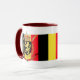 Peu de le manteau des bras (comme utilisé par le gouvernement fédéral belge, sur des couvertures de passeport et les sites officiels de la monarchie et du gouvernement) comprend le bouclier, la couronne royale, les sceptres croisés, le collier de l'ordre de Leopold et la devise.