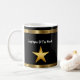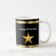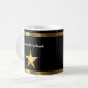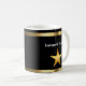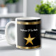 Mugs de café Employé élégant du mois comprenant une étoile de couleur or et un élément de design à lignes géométriques ainsi que des modèles de texte que vous pouvez personnaliser. Conçu pour récompenser l'excellence et la productivité au travail. Le design est affiché des deux côtés de la tasse à café pour les buveurs droitier ou gaucher.