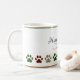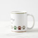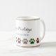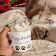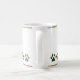 Une tasse à café de Noël super mignonne et festive avec motif patte de chien en rouge, vert, noir et blanc buffle chèque design plaid, avec cadre en feuille. Customisez le texte en modifiant le modèle.