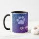 Image d'art photographique mignonne d'empreintes de pattes de chiens sur l'asphalte, où un petit chien a récemment traversé de la peinture fraîche, puis le long de la route (la peinture n'est pas toxique). J'aime vraiment cette capture d'un moment dans le temps qui raconte une histoire. Vous pouvez ajouter votre message personnel, des mots de doggy avec esprit et sagesse, ou supprimer le texte et juste garder la photo des empreintes de pattes. Envoyez à quelqu'un d'autre ou conservez-le pour votre propre collection. Il y a un filtre couleur sur ce design, dégradé violet et blues allant du bleu-vert clair, à travers le bleu profond au violet, à une belle violette punchy. Le texte est rose blanc cassé. J'ai choisi le noir pour l'intérieur de cette tasse ; vous pouvez choisir une couleur différente si vous le souhaitez, ou une tasse de style différent. Vous avez des options excitantes ! Ce design amusant s'adresse aux amoureux de les chiens, aux propriétaires de chiens, aux marcheurs de chiens, aux toiletteurs de chiens, à tous ceux qui possèdent ou travaillent dans un salon de chien ou un hôtel pour chiens, aux amoureux des animaux, vétérinaire ou vétérinaire, à votre gardien de chiens, à ceux qui ont un totem de chien ou un esprit animal, ou à toute autre personne qui aime les chiens!