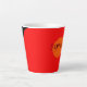 Cette tasse moderne présente des couleurs chaudes comme le rouge et l'orange et le mot "Expresso" au centre.