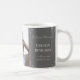Dans Loving Memory Elegant Tribute Funeral Grey Coffee Mug. Design élégant et élégant pour mieux commémorer la vie de vos proches défunts. Ce design présente un cadre fleuri vintage et un dicton : "Vous avez touché nos vies, et vous resterez dans nos coeurs pour toujours !". Il y a 2 lignes personnalisables à pour vous d'ajouter le nom du défunt et les dates.