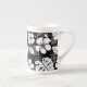 jolie porcelaine, bonne dimension effet brillant bien dans l'ensemble. Le motif et les couleurs sont réussis.Je trouve néanmoins dommage de ne pas occuper tout l'espace avc le motif car la partie rouge au dos de la tasse est trop présente et pas intéressante visuellement.