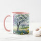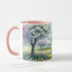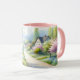 This soft watercolor landscape evokes a tranquil cottagecore dream, where a winding path drifts through flowering meadows toward peaceful countryside homes. Airy brushstrokes and gentle washes create a light, whimsical mood filled with blooming trees, pastel wildflowers, and fresh spring greens. Blush pinks, creamy whites, sky blues, and tender yellows blend seamlessly, giving the scene an enchanting, storybook quality. The composition feels calm and inviting, capturing the romance of slow rural life and the quiet beauty of nature awakening. With its folk-inspired charm and serene atmosphere, the artwork radiates warmth, nostalgia, and a sense of peaceful escape into a blossoming countryside. AI generated artwork.