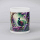 This artwork presents a luminous peacock nestled within a woven floral wreath, blending fantasy folk aesthetics with a soft cottagecore mood. Iridescent teal, emerald, and sapphire feathers glow against gentle lilac blossoms, twisting vines, and a dreamy mosaic background that feels both magical and serene. The composition balances elegance and whimsy, creating a sense of quiet wonder and storybook charm. Subtle bokeh lights and layered textures add depth, while the harmonious color palette evokes enchanted gardens, boho romance, and fairytale forests. The overall atmosphere is calming yet richly detailed, perfect for those drawn to nature-inspired fantasy, whimsical decor, and poetic visual storytelling. AI generated artwork.