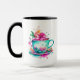 Graphique assez vintage d'une tasse à café aux fleurs roses et la citation, "Encore une belle journée pour recommencer."