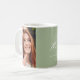 Photo minimaliste moderne enregistrer la date sauge vert élégant script design mariage mug .