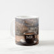 Une tasse à café personnalisée Save the Date ou faire-part mariage avec un tableau de deux tasses à café donnant sur un paysage de montagne. Vous pouvez également utiliser cette tasse pour demander à votre meilleur ou à vos demoiselles d'honneur. Personnalisable aussi pour d'autres situations.