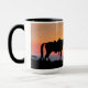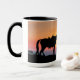 La silhouette d'un cow-boy texan réconfortant son cheval et son chien d'animal de compagnie aide à surmonter la solitude sur les plaines désertiques au coucher du soleil.