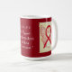 Epidermolyse Bullosa (EB) utilise un ruban de sensibilisation rouge pour montrer son soutien à sa sensibilisation. Cette tasse personnalisée comporte deux peintures d'art d'ange gardien de ruban rouge avec le message "I Hope and Support Epidermolysis Bullosa Awareness!" Les tasses à café ou tasses à ruban d'art de l'ange gardien de la conscience rouge personnalisées peuvent être customisées de messages personnalisés pour faire de grandes tasses de cause pour des collecteurs de fonds de sensibilisation, des cadeaux de tasse de conscience, ou d'autres événements spéciaux ou pour des occasions de soutien. Faites vos propres mots customisés pour un message personnel d'espoir et de soutien à partager!