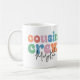 Style groovy des années 80 en lettres bulles colorées personnalisez avec le nom des cousins sur une tasse à café.