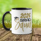 Voici un cadeau souvenir amusant pour le diplômé d'université ou de lycée. Une casquette de diplômé noire est directement au-dessus du "S" dans le texte or et le texte noir qui dit "Équipe de diplômés (ANNÉE)". L'image et le texte sont répétés sur deux côtés de la tasse, avec le nom du diplômé en texte noir entre eux. Le champ de texte de l'année peut être facilement modifié pour correspondre à l'année appropriée.
