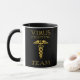 Image d'un symbole médical de caduceus et texte stylisé Virus Fighting Team. Élégante tasse à café d'art. Vous pouvez transférer cette conception à un autre produit, il suffit d'utiliser l'option ci-après. Amusez-vous, achetez-en un, amusez-vous, restez en sécurité et soyez heureux !