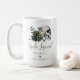 Cette tasse d'équipe de mariée / demoiselle d'honneur fait partie de la collection de mariage / enterrement de vie de jeune fille gothique irlandaise / St. Patrick's Day "Jusqu'à ce que la mort nous sépare". Elle présente des illustrations thématiques irlandaises et gothiques dessinées à la main à l'encre noire, mettant en vedette un crâne orné de roses vertes, de feuilles, de baies, de fleurs sauvages et de trèfles verts. Tout le texte est modifiable.