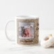 L'impression de girafe pour l'amoureux des animaux crée une tasse Fière Godmère en espagnol - Madrina Orgullosa - Ajoutez deux photos, le nom et les détails du bébé ou changez tout le texte en fonction de vos besoins en cadeaux.