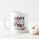 Octobre est le Mois de sensibilisation au cancer du sein, mais cette tasse à café inspirante est parfaite toute l'année. Cette jolie tasse à café présente un ruban rose avec les mots sincères : "Espoir de tout ton coeur, combat de toute ta force." Personnalisez-le avec le nom de votre ami et l'année, et elle le chérira pour les années à venir.