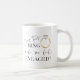 Est-ce que cette bague me fait paraître fiancée ? Une mignonne tasse blanche au design moderne de calligraphie de luxe avec une bague de fiançailles en diamant doré sur un arrière - plan rose vif. Un cadeau mignon pour ceux qui seront bientôt mariés.
