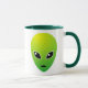 Une tasse alien verte. Le motif est répété des deux côtés.