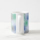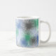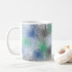 Cette tasse a un design moderne du milieu du siècle des starbursts dans glaucous (bleu), gris, bleu clair et vert.