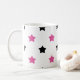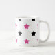Aimes-tu les mignonnes tasses ? Cette tasse a un motif d'étoiles roses et noires sur un arrière - plan blanc.