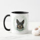 "LOVE MY KELPIE DOG" declares this mug for the proud Australian Kelpie owner. Each side of the mug has a beautiful portrait of a black and tan Kelpie framed by soft green watercolor eucalyptus leaves. Between the two images is the text, which may be easily customized, or even removed, by you, and your monogram or name.