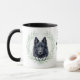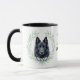 "LOVE MY BELGIAN SHEEPDOG" declares this mug for the proud Sheepdog owner. Each side of the mug has a beautiful portrait of a black Belgian Sheepdog framed by soft green watercolor eucalyptus leaves. Between the two images is the text, which may be easily customized, or even removed by you, and your monogram or name.