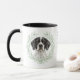 "LOVE MY ENGLISH POINTER DOG" declares this mug for the Pointer dog owner. Each side of the mug has a watercolor portrait of a black and white Pointer framed by soft green watercolor eucalyptus leaves. Between the two images is the text, which may be easily customized, or even removed by you, and your monogram or name.