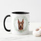 "LOVE MY DOBERMAN PINSCHER DOG" declares this mug for the proud Doberman owner. Each side of the mug has a beautiful portrait of a red brown Dobie framed by soft green watercolor eucalyptus leaves. Between the two images is the text, which may be easily customized, or even removed by you, and your monogram or name.