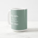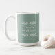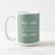 Cette tasse de café de 15 oz de taille ultra-compacte est composée de l'expression "Pratiquer la pleine conscience", avec un simple design en noir sur un arrière - plan vert poussiéreux avec branches d'ivoire.