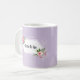 Mug future mariée pour un shower de mariage avec un design floral à l'aquarelle et texte personnalisable et fond violet. Les images de fleurs utilisées sont gracieusement offertes par freepik.