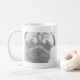 Un visage de carlin mignon avec effet sculpté appliqué au design. Des tasses à café personnalisées. Lignes de largeur différente créant l'image. Idée cadeau pour les personnes qui aiment les carlins.