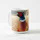 Un faisan plein de vie se dresse au milieu d'un champ de blé doré, présentant ses couleurs vives dans un cadre rural serein, avec une charmante ferme sous un ciel doux et nuageux.