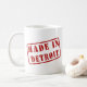 Fait à Detroit ! Êtes-vous de Detroit, Michigan ? Avez-vous un ami ou un membre de la famille qui aiment Detroit, Michigan ? Si oui, ceci "a fait dans…" la tasse est exactement le cadeau que vous recherchez ! Les caractéristiques de conception qu'un patiné "fait à Detroit" en rouge pochoir-comme le lettrage a entourées par un rectangle arrondi par rouge.