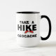 Faites une randonnée, texte de géocache, avec le K en randonnée portant le basket est un drôle de design de géocaching pour les cachers à l'anniversaire, les vacances et les événements de géocaching.