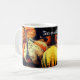 Gros plan de quelques belles et colorées gourdes - un signe sûr de l'automne. Vous pouvez personnaliser cette tasse à l'aide de l'outil de conception - idéal pour le travail si vous avez l'habitude de poser votre tasse et de la laisser - tout le monde saura à qui elle appartient. Disponible en différentes tailles et styles, y compris la taille du voyage. Super idée cadeau !