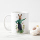 Un design cool avec un lapin en vêtements de fantaisie dans un champ de fleurs.