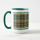 Tasse à café avec tartan de clan Farrell, un motif classique en tan et vert, aux accents jaune, noir et blanc éclatants. Cinq styles disponibles en deux tailles.