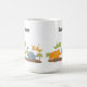 Une tasse au design mignon avec 4 dinosaures. 2 volent et 2 sont au sol. Créé avec des aquarelles.