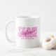 Conception de tasse à boisson personnalisée pour votre fête nuptiale avec "TEAM BRIDE" en gras rose pâle. Customisez le nom de la servante dans la coordination du script rose foncé. Le titre ou le texte personnalisé est présenté ci-dessous. Toutes les couleurs de ce design sont personnalisables dans la zone d'outil de design Zazzle! Le design se répète à l'arrière. Message contenant des questions ou des demandes de couleur personnalisées.