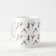 Cette tasse présente un motif répétitif de femmes de yoga dans différentes postures conçu par Destei. L'une se fond dans la posture du danseur, une autre tient la posture du chien tête en bas et la troisième est en équilibre dans la posture de l'arbre. Chacune porte une tenue différente avec des combinaisons de couleurs rose et noir, bleu et blanc et vert et marron. Les postures illustrées apportent du mouvement et de l'énergie au design. La tasse comprend également une zone de texte personnalisable où un nom peut être ajouté, ce qui en fait un moyen unique et élégant de savourer vos boissons préférées.