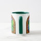 Une tasse avec un dragon fait dans le style d'un vitrail.