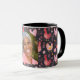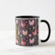 Un arrière - plan noir décoré d'un coq de ferme rétro et puis motif en rouge, rose. Personnalisez et ajoutez une photo dans le cadre en forme d'arc.